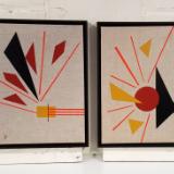 Acrylic paint, Oil Pastel on linen canvas – each painting is 12”x16” x .75” deep.